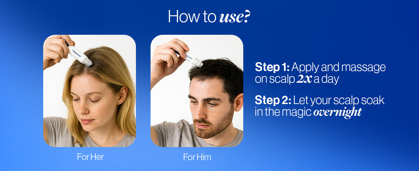 Step 2: Gently massage with your fingertips to help the serum absorb completely. Leave it on overnight for best results.✅ Use twice daily, consistently for 3 months.Since it’s a leave-in serum, there’s no need to wash it off after application or the next day.Its non-oily formula makes everyday use effortless and comfortable.You can pair it with your regular hair oils, shampoos, serums, or supplements for enhanced results.